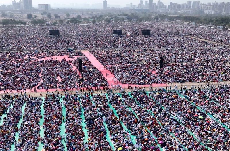 Several lakhs of people were sitting for hours under searing sun at the Kharghar International Corporate Park grounds when social activist Dattatreya Narayan alias Appasaheb Dharmadhikari was conferred the award.