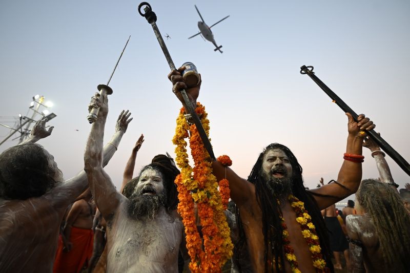 Millions of pilgrims thronged the meeting point of three rivers named Triveni Sangam in north India's Prayagraj city for the third Amrit Snan (an auspicious bathing ritual followed by Hindus) of the ongoing Maha Kumbh Mela or Great Pitcher Festival on Monday.