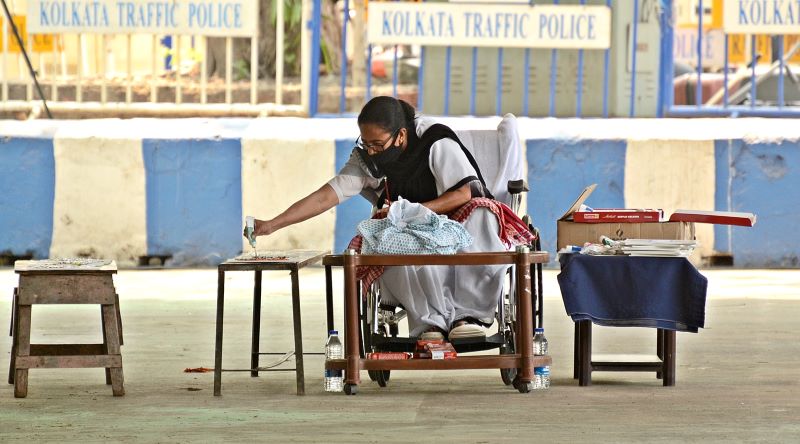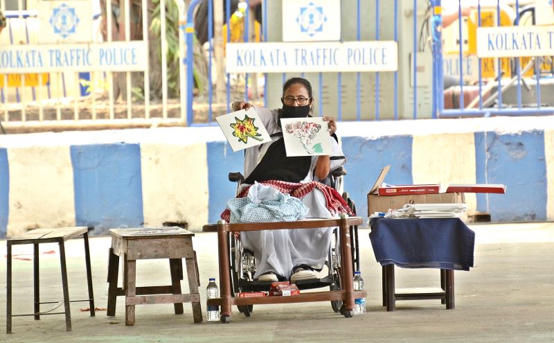 During the few hours, the chief of West Bengal's ruling party Trinamool Congress (TMC) was seen busy with paintings.
