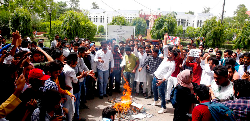 Students of Delhi's Jamia Milia University also held protests demanding the arrest of Sharma and Jindal.