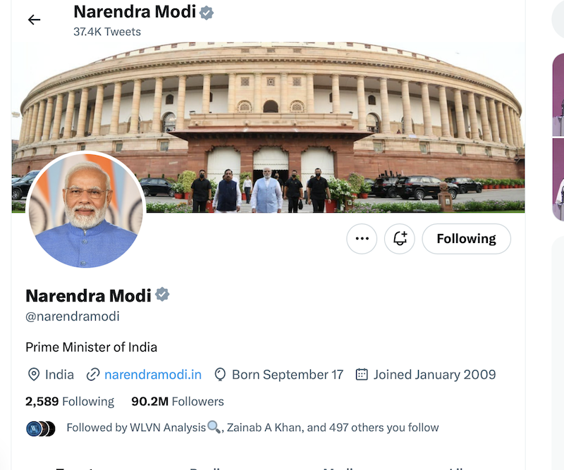New Delhi: Indian PM Narendra Modi's Twitter account is currently followed by 90.2 million netizens, making him one of the most followed active politicians on the micro-blogging site. He is way ahead of world leaders like US president Joe Biden and UK Prime Minister Rishi Sunak.
