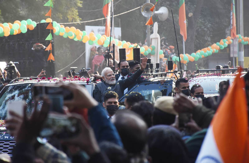 New Delhi: Prime Minister Narendra Modi on Monday participated in a massive roadshow in New Delhi ahead of the major national executive meeting of the BJP.