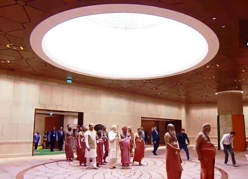 Around 60 religious heads are present at the event which also comprised a mega havan in the Parliament premises outside the new building.