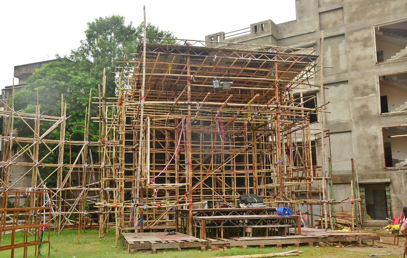 When IBNS headed to the ground where the puja is organised, the skeleton of the pandal (marquee in English) was found erected with some handful of men busy with their works on a quiet afternoon.