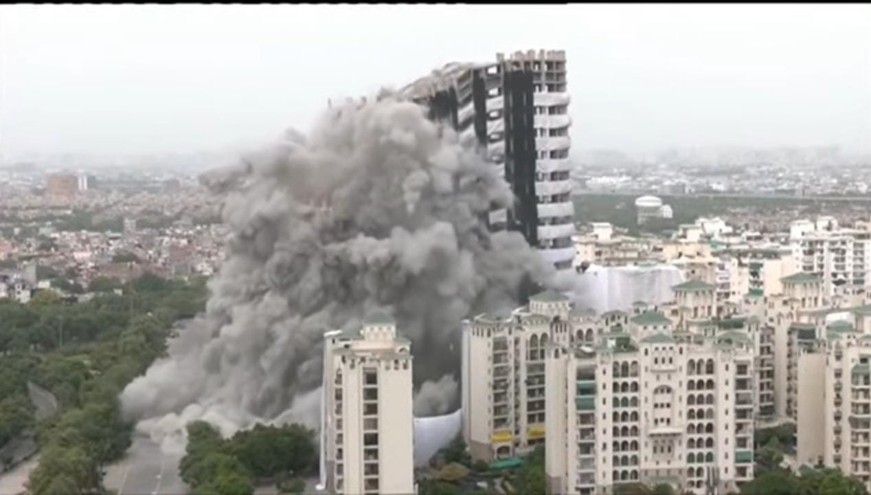 Noida: The Supertech twin towers in Noida were demolished on Sunday by a massive explosion after the Supreme Court found their construction in violation of norms.