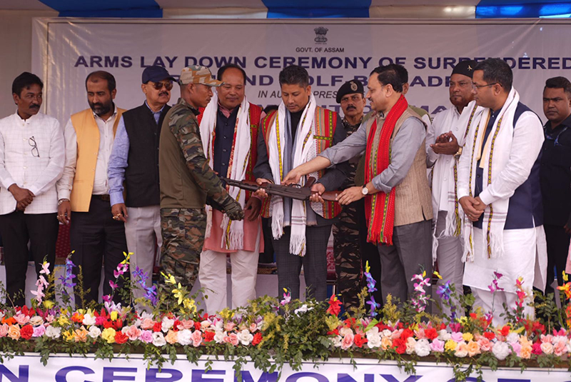The militants of the United Democratic Liberation Front of Barak Valley (UDLF-BV) and Bru Revolutionary Army of Union (BRAU), who are currently on a ceasefire, laid down their arms during the programme held at Katlicherra in Hailakandi district in presence of Assam Minister Pijush Hazarika, Assam Legislative Assembly Speaker Biswajit Daimary, ADGP (SB) Hiren Nath and other senior police officials.