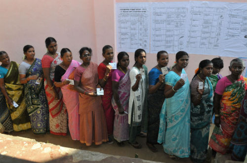 Fortyone-year-old Reddy's wife Bharti and sister YS Sharmila were seen in queue for voting while he himself and his mother Y S Vijayamma, who is the party's honorary president, voted in Pulivendula in native Kadapa district.