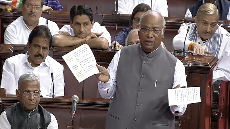 New Delhi/UNI: Raising the two key issues of unemployment and inflation, Congress president and Leader of Opposition (LoP) in Rajya Sabha Mallikarjun Kharge on Monday pitched for passing a women reservation bill in the ongoing special session of the Parliament.