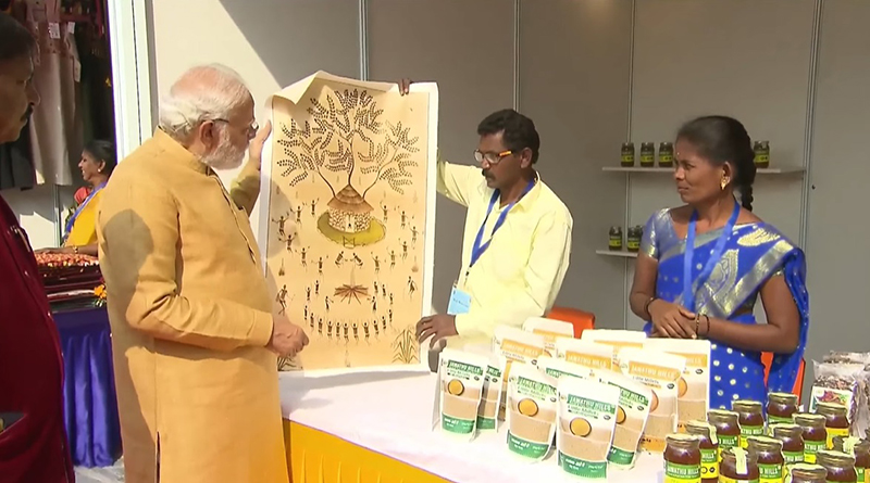 After the inauguration, Prime Minister Modi visited the various stalls put up by various states and UTs and interacted with tribal artisans and had a look at their hand looms, handicrafts and tribal products.