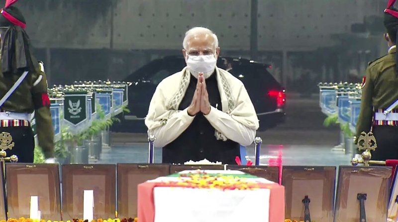 PM Modi pays tribute to General Bipin Rawat, others at Delhi's Palam Air Force base