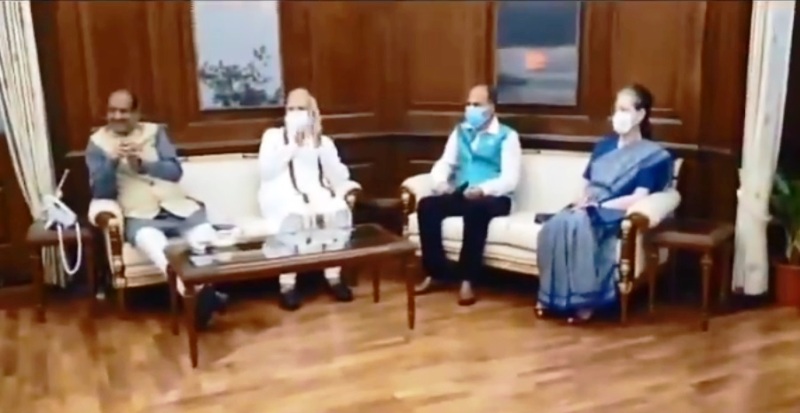 New Delhi/IBNS: Prime Minister Narendra Modi and Congress President Sonia Gandhi were on Wednesday present at a meeting of all political parties' leaders called by Speaker Om Birla at his room in Parliament after the monsoon session ended this morning, two days early.