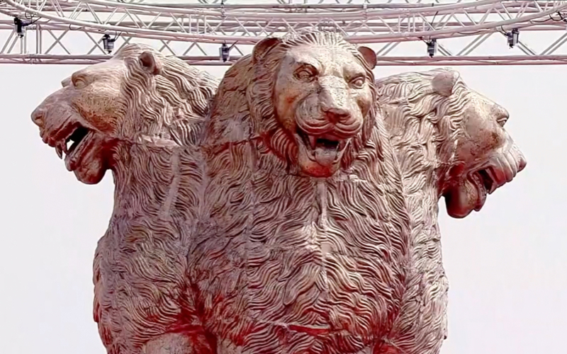 A supporting structure of steel weighing around 6,500 Kg has been constructed to support the emblem.