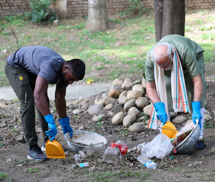 Prime Minister takes part in cleanliness drive 'Swachhta Hi Sewa’ with fitness influencer Ankit Baiyanpuria