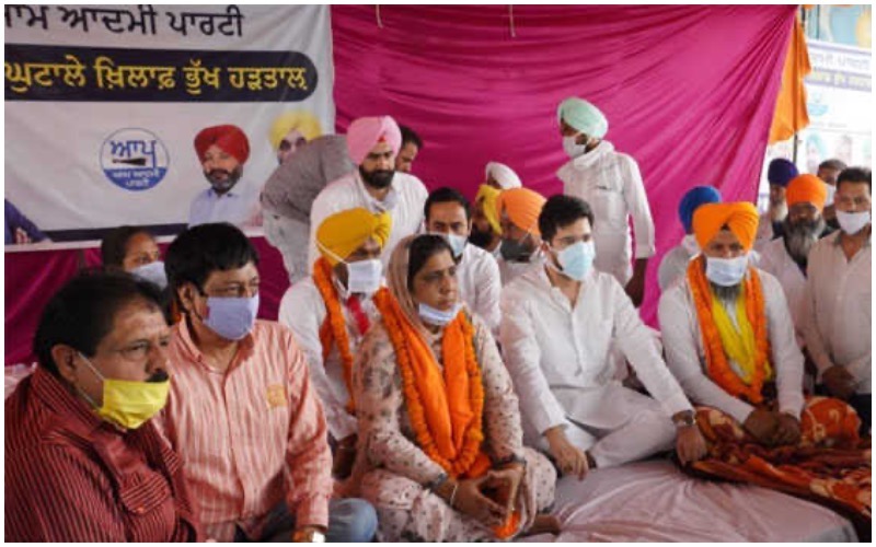 Ludhiana/UNI: Aam Aadmi Party (AAP) Punjab co-incharge Raghav Chadha arrived in Ludhiana on Friday from Delhi to take part in the hunger strike which is going on for the last three days.
