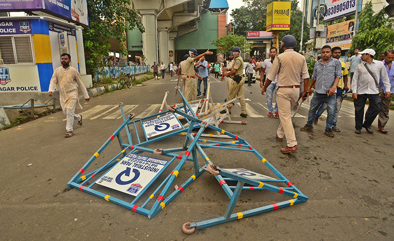 The rally, led by senior state BJP leaders, was headed towards Swasthya Bhawan. However, the police set up barricades near Indira Bhawan in Salt Lake to prevent the protesters from advancing further.