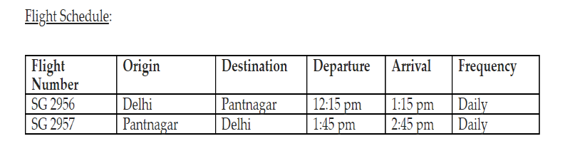 SpiceJet introduces new flight connecting New Delhi and Pantnagar