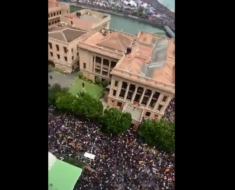 On Saturday, hundreds of thousands of protesters demanding the resignation of Sri Lankan President Gotabaya Rajapaksa stormed the President's House here on Saturday after overcoming stiff resistance put up by security forces, leaving an unspecified number of people injured.