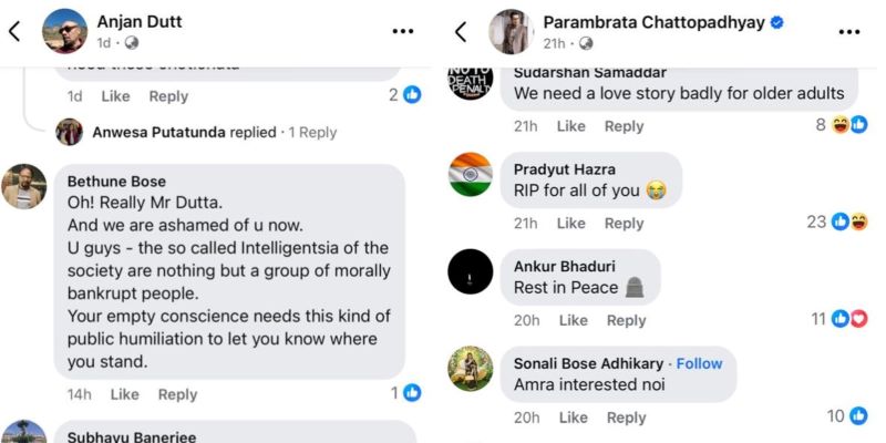 In the comment section, one Munmum Basu wrote, "Sri Anjan Dutta, I am a great admirer of your work, but in this case, I don't agree. Selective opportunistic intellectuals don't find a place in the Bengali mindset in that way. That actress didn't get it either. Take care, sir, I bow to you, I am a blind devotee of your work."