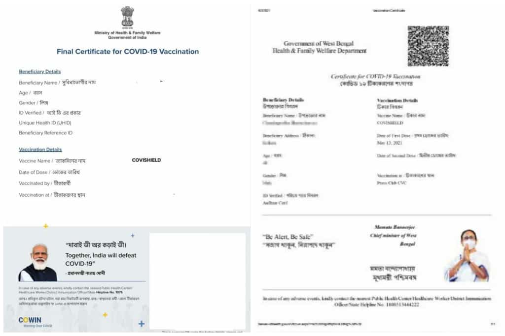 But now West Bengal is issuing a separate certificate with the government's official logo and the Chief Minister's photo for all adults aged 18-44, to whom the state government is providing vaccines by buying them from the Centre.