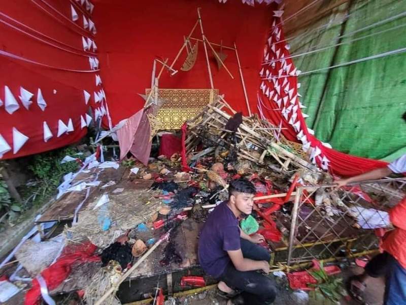 A Durga Puja pandal in Bangladesh destroyed due to the communal violence last month. File image from Twitter.