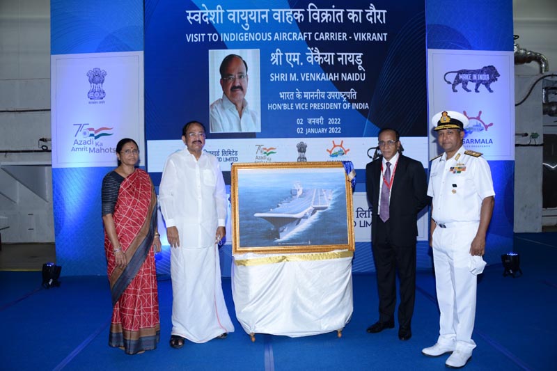 New Delhi: Vice President Venkaiah Naidu visited the Indigenous Aircraft Carrier (IAC) ‘Vikrant’ under advanced stage of construction at Cochin Shipyard Ltd at Kochi, on Jan 2.