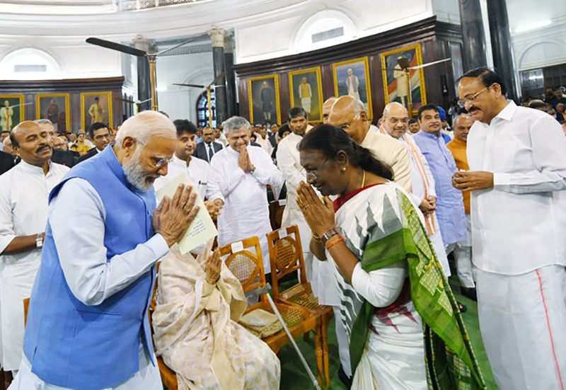 Murmu's swearing-in ceremony was attended by outgoing President Ram Nath Kovind, Vice President Venkaiah Naidu, Lok Sabha Speaker Om Birla, Prime Minister Narendra Modi and his ministers, all MPs et al.
