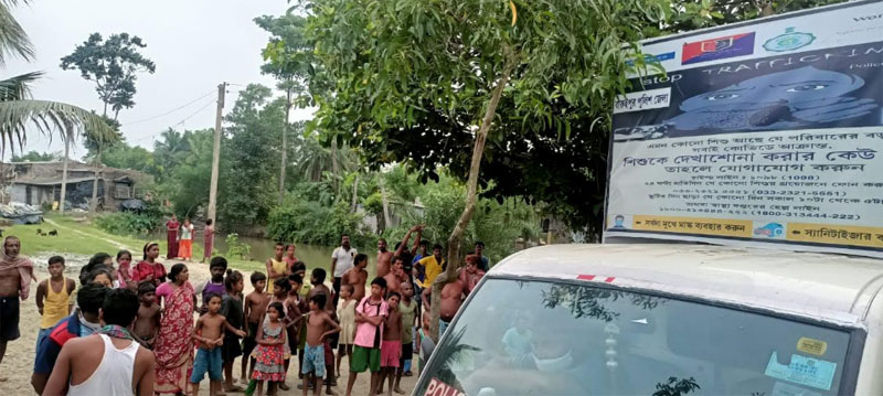 A tableau supported by the NGO World Vision India rolled through the remote villages of different police station areas under Baruipur Police District from June 4 to July 4 promoting awareness against child marriage, child labour, child abuse, cyber safety, Covid19 and human trafficking.