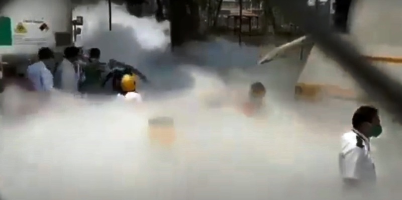 Visuals showed the gas leaking from the tanker outside the hospital and dense white fumes covering the area rapidly.