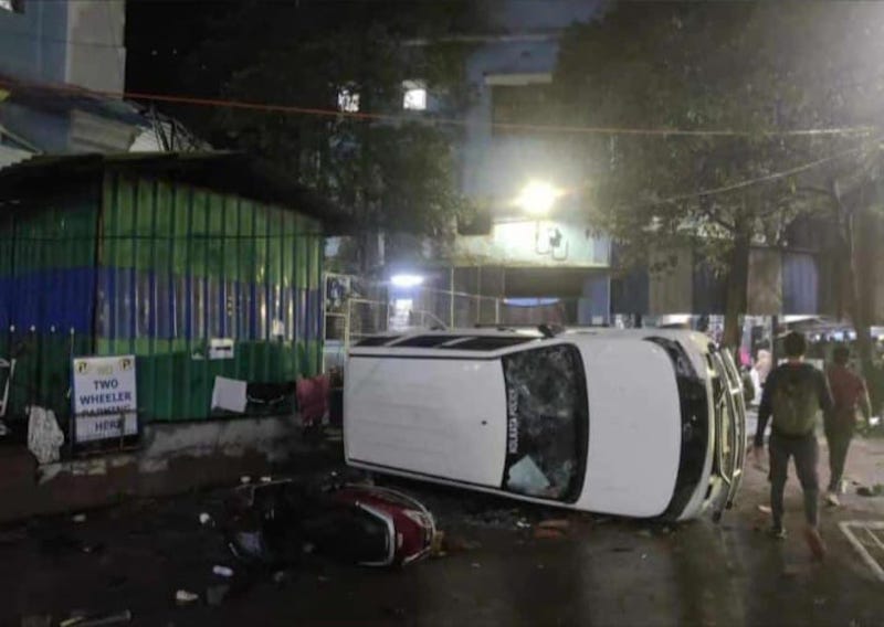The miscreants vandalised the stage where the doctors' protest was taking place. They even overturned the police vehicles turning the area into a battleground.