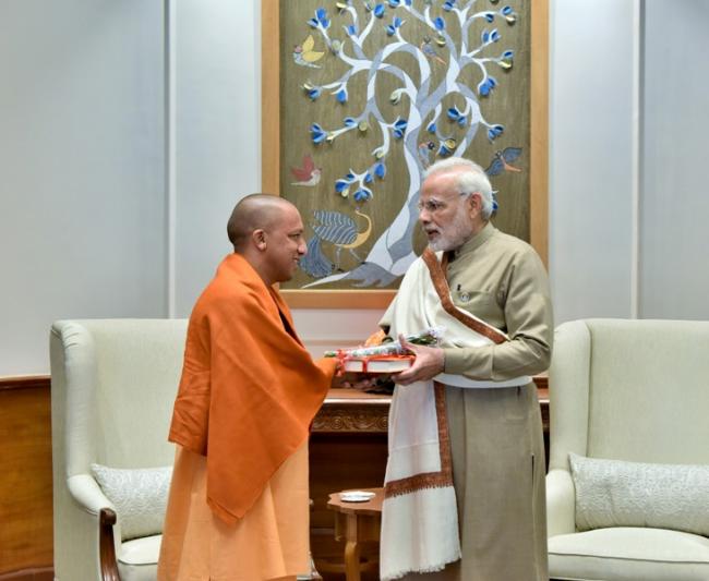 The Chief Minister, Uttar Pradesh, Yogi Adityanath calls on the Prime Minister, Narendra Modi, in New Delhi on December 02, 2017.