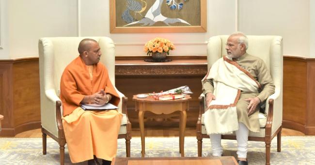 The Chief Minister, Uttar Pradesh, Yogi Adityanath calls on the Prime Minister, Narendra Modi, in New Delhi on December 02, 2017.