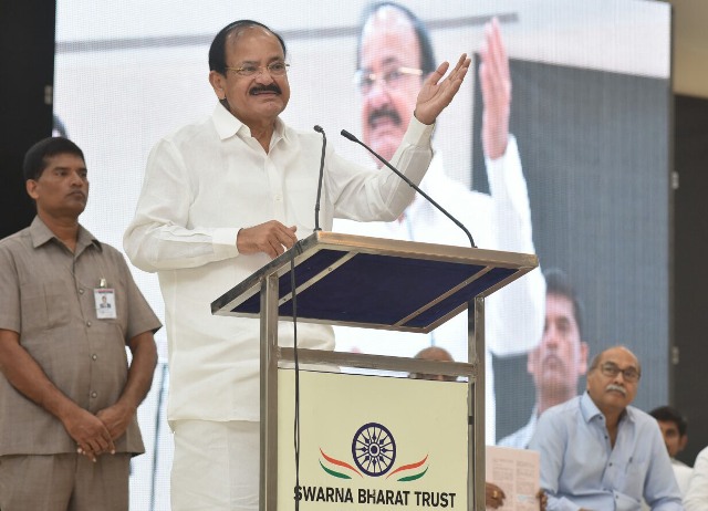 The Vice President, M. Venkaiah Naidu addressing the gathering after inaugurating a free Medical Camp for Deaf and Dumb children, at Swarna Bharat Trust, in Atkur, Andhra Pradesh on December 31, 2017.