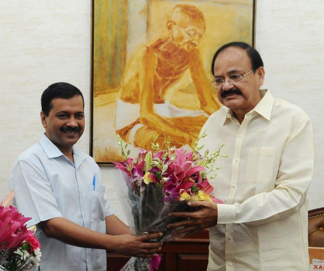 The Chief Minister of Delhi,Arvind Kejriwal calling on the Vice President,M.Venkaiah Naidu, in New Delhi on September 02, 2017.The Deputy Chief Minister of Delhi,Manish Sisodia is also seen.
