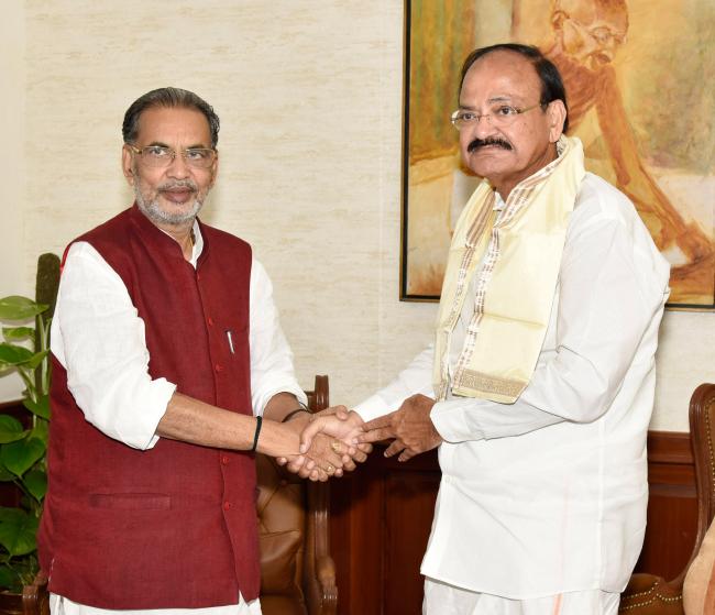 The Union Minister for Agriculture and Farmers Welfare,Radha Mohan Singh calling on the Vice President,M.Venkaiah Naidu, in New Delhi on September 05, 2017.