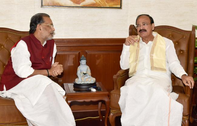 The Union Minister for Agriculture and Farmers Welfare,Radha Mohan Singh calling on the Vice President, M.Venkaiah Naidu, in New Delhi on September 05, 2017.