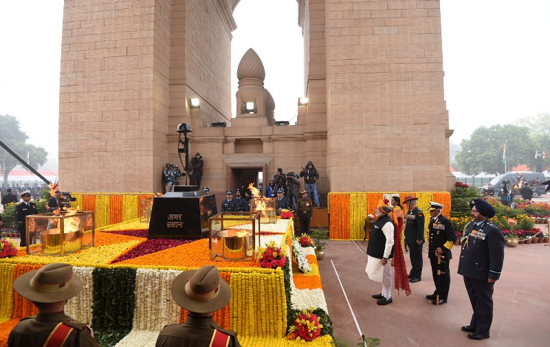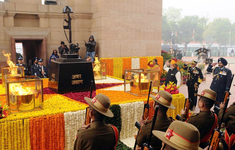 The Prime Minister, Narendra Modi paying homage at the Amar Jawan Jyoti, India Gate, on the occasion of the 69th Republic Day Parade 2018, in New Delhi on January 26, 2018.
