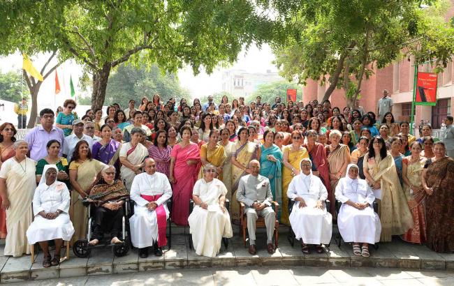 The President,RamNathKovind in a group photograph at the inaugural function of the Golden Jubilee Celebrations of Jesus & Mary College, in New Delhi onSeptember20,2017.