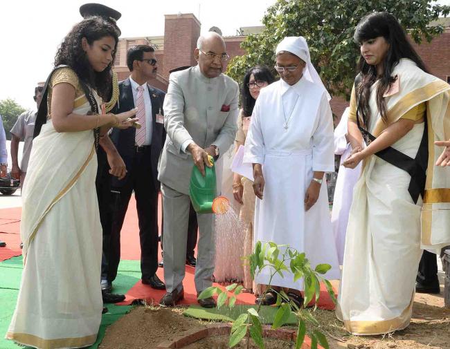 The President, RamNathKovind planting a sapling at the inaugural function of the Golden Jubilee Celebrations of Jesus & Mary College, in New Delhi on September 20,2017.