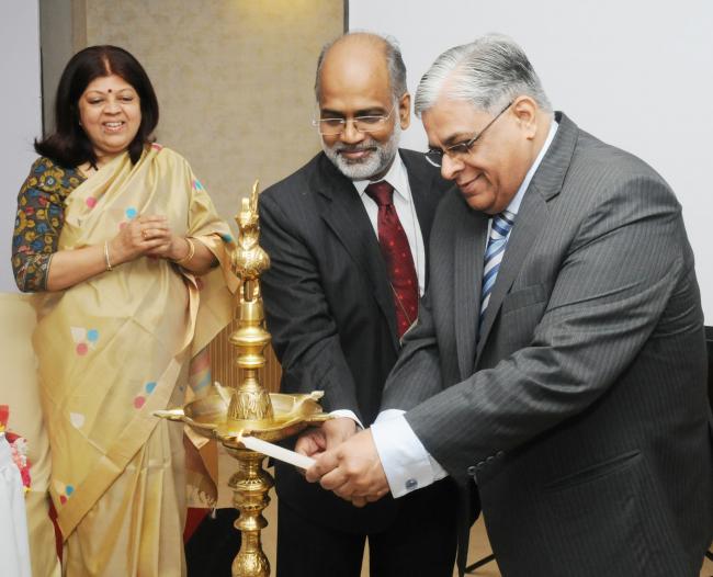 The Vigilance Commissioner, CVC, T. M. Bhasin lighting the lamp at the National Seminar on Fraud Risk Management-The New Initiatives, organised by the Employees’ Provident Fund Organisation (EPFO), in New Delhi on November 03, 2017.