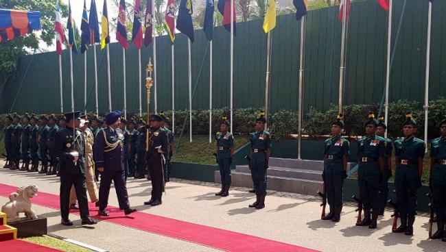 The Chief of the Air Staff, Air Chief Marshal B.S. Dhanoa inspecting the Guard of Honour, at Army HQ of Sri Lanka on December 11, 2017.