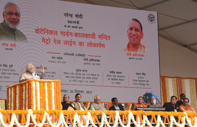 The Prime Minister, Narendra Modi addressing the public meeting, at Amity University Ground, in Noida, Uttar Pradesh on December 25, 2017.
