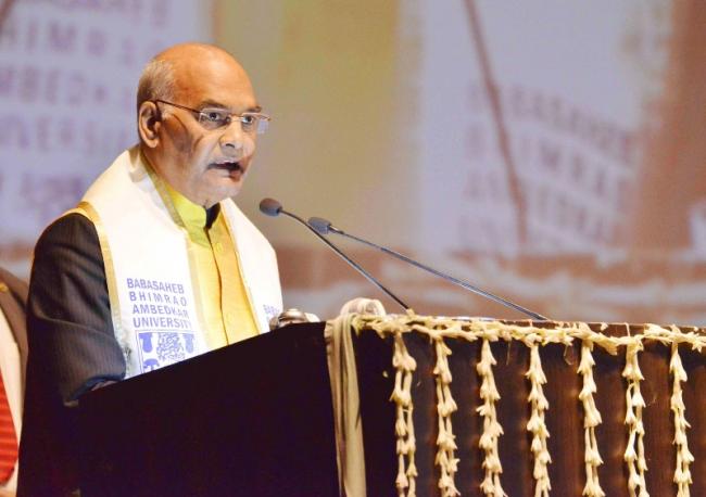 The President, Ram Nath Kovind addressing at the 7th Convocation of Babasaheb Ambedkar University, at Lucknow, in Uttar Pradesh on December 15, 2017.