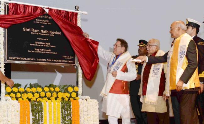 The President, Ram Nath Kovind inaugurating the ‘Ambedkar Bhavan’, at the 7th Convocation of Babasaheb Ambedkar University, at Lucknow, in Uttar Pradesh on December 15, 2017. The Governor of Uttar Pradesh, Ram Naik is also seen.
