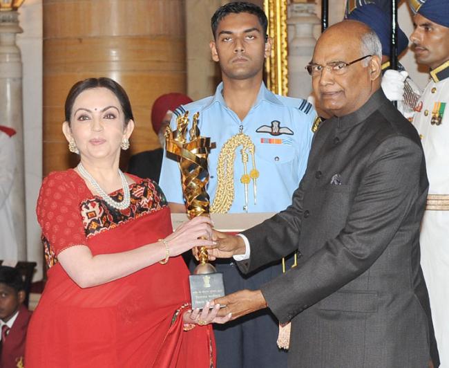 The President,Ram Nath Kovind presenting the Rashtriya Khel Protsahan Puruskar, 2017 to the Sports for Development - Reliance Foundation, in a glittering ceremony, at Rashtrapati Bhavan, in New Delhi on August 29, 2017.