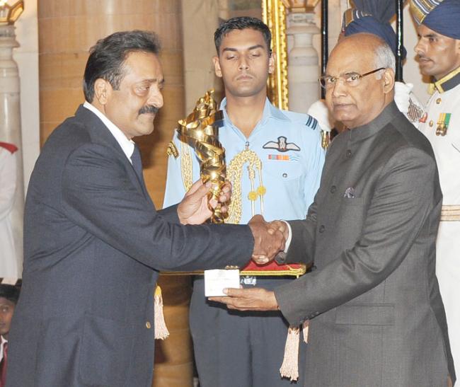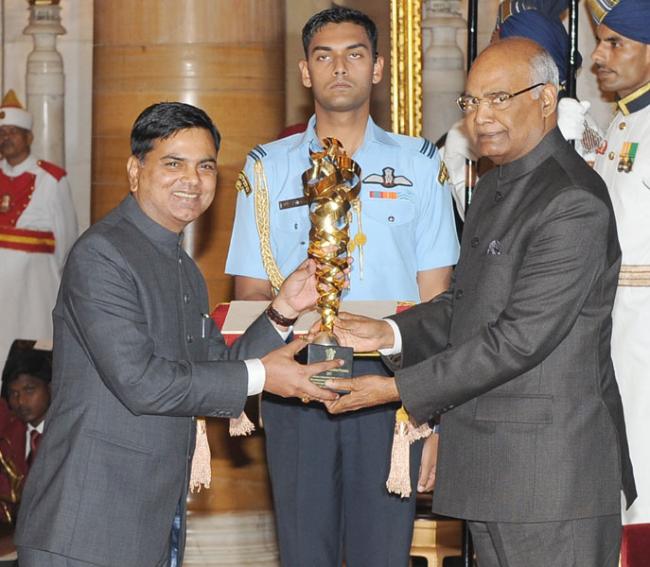 The PresidentRam Nath Kovind presenting the Tenzing Norgay National Adventure Award, 2017 to Shri Ashok Abbey - LifeTime Achievement, in a glittering ceremony, at Rashtrapati Bhavan, in New Delhi on August 29, 2017.