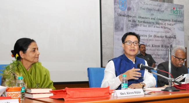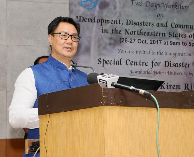 The Minister of State for Home Affairs, Kiren Rijiju addressing at the inauguration of the Special Centre for Disaster Research, at Jawaharlal Nehru University (JNU), in New Delhi on October 26, 2017.