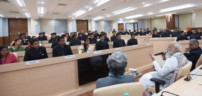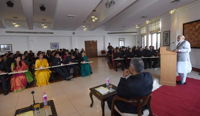 The Prime Minister, Narendra Modi interacting with the Officer Trainees of the 92nd Foundation Course, at the Lal Bahadur Shastri National Academy of Administration (LBSNAA), in Mussoorie, Uttarakhand on October 26, 2017.