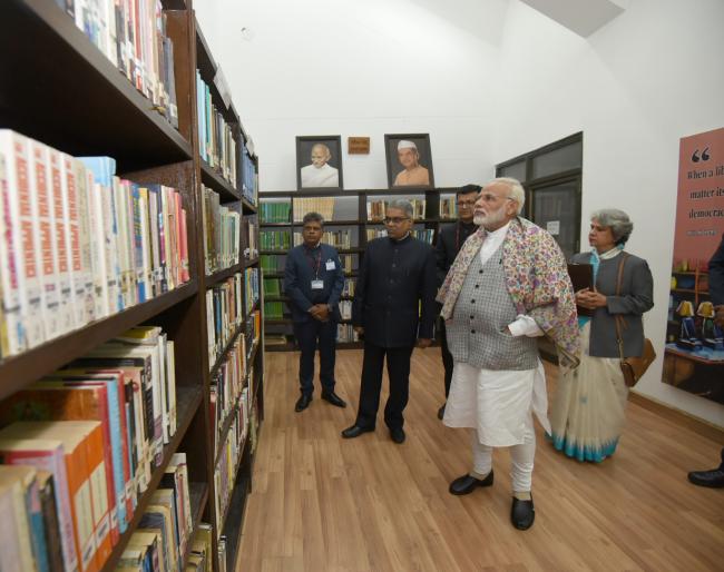 The Prime Minister,Narendra Modi visiting the Gandhi Smriti Library, at the Lal Bahadur Shastri National Academy of Administration (LBSNAA), in Mussoorie, Uttarakhand on October 26, 2017.