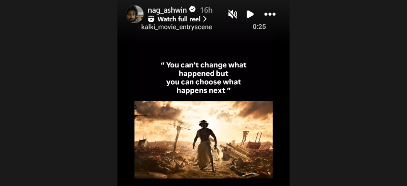 Ashwin took to Instagram to share a video from Kalki 2898 AD with a comment.