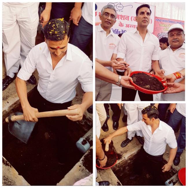 Akshay Kumar empties toilet pit with Minister DWS in MP